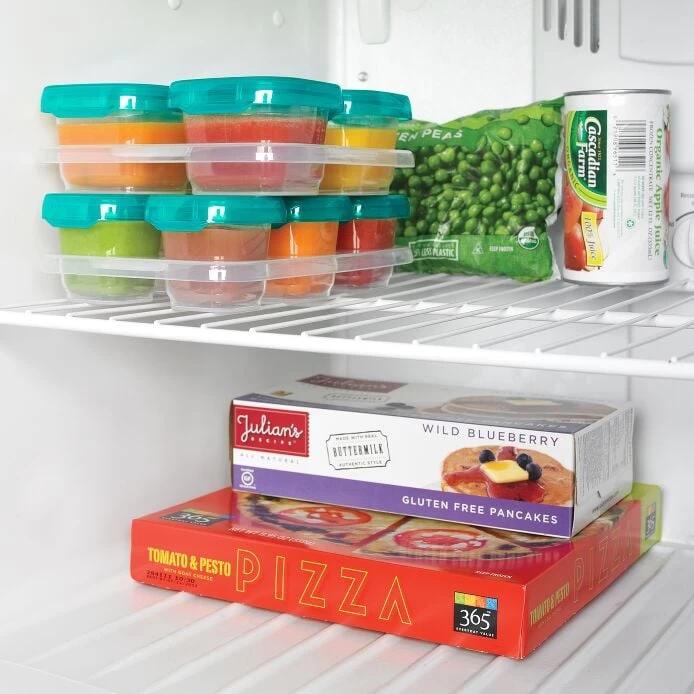 Baby Blocks are airtight, watertight and leakproof for safe storage and spill-free outings. Blocks fit into the freezing tray, and multiple trays can be stacked to save space in the freezer. Clear lids and bodies allow you to see what’s inside, and measurement markings make portioning a breeze.