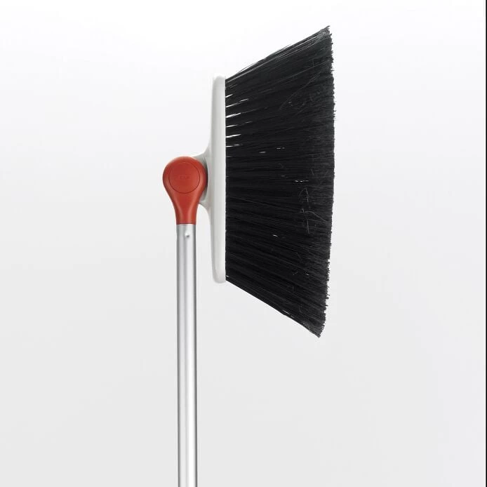 Now you can sweep behind the fridge, under furniture and around tight corners. Our Any-Angle Broom’s head adjusts with a push of your foot, then clicks into place to stay put while you sweep. Flexible bristles have feathered tips designed to prevent flicking back and scattering dust.