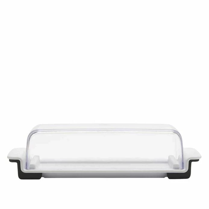 Our Butter Dish has stoppers on three sides to keep sticks from sliding around as you cut them. Accommodates longer, slimmer sticks (the dominant shape east of the Rocky Mountains) as well as shorter, stouter sticks (commonly found out West), with measurement markings for each.