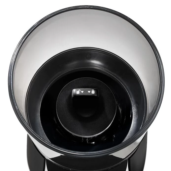 - Mess-free hopper with “trap door” keeps beans contained when you remove it