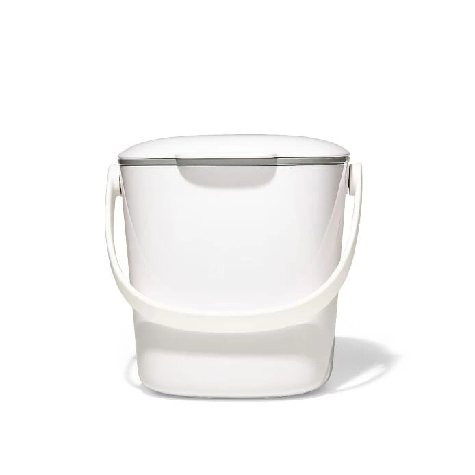 The countertop-friendly OXO Good Grips Easy-Clean Compost Bin was designed with the home cook in mind. The flip-up lid can be opened and closed with one hand, and keeps odors contained. The sturdy handle makes it easy to carry the filled Bin and smooth interior walls make cleanup simple.