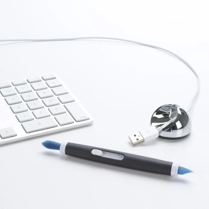 Keep your phones, computers and other electronics dust-free. The slim silicone wiper fits into little nooks around keyboard keys and screen edges, and the brush is soft enough for camera lenses and other sensitive areas. Includes a cap for wiper and retractable bristles.