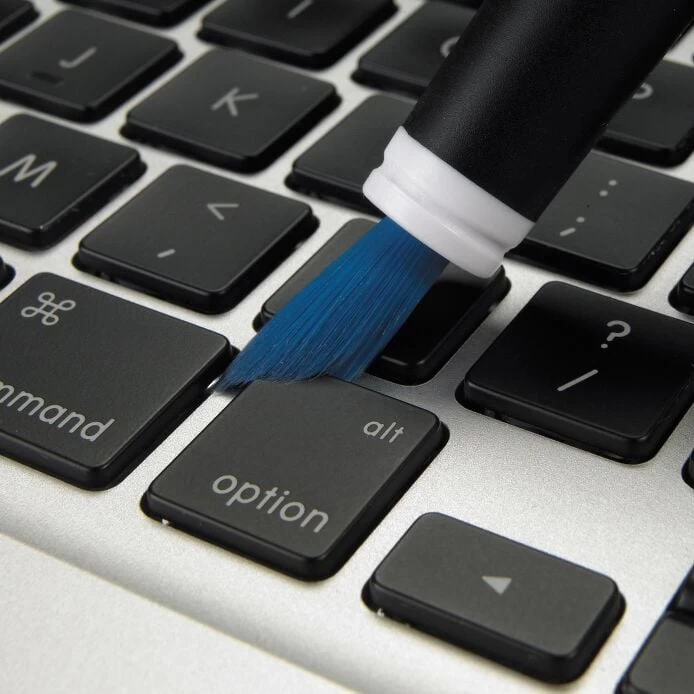 This 2-in-1 technology cleaning brush keeps smartphones, computers, gaming consoles and other everyday electronic gear grime free. The silicone wiper end cleans hard-to-reach dust and dirt from keys and screen edges, ports and earbud cases. The retractable brush has soft, sturdy bristles to thoroughly clean camera lenses and other sensitive surfaces. With a compact size and shape, the OXO Good Grips Electronics Cleaning Brush is perfect for tucking in purses, laptop bags, desk drawers, and glove compartments. Includes a storage cap for wiper end drawers, and glove compartments. Includes a storage cap for wiper end.