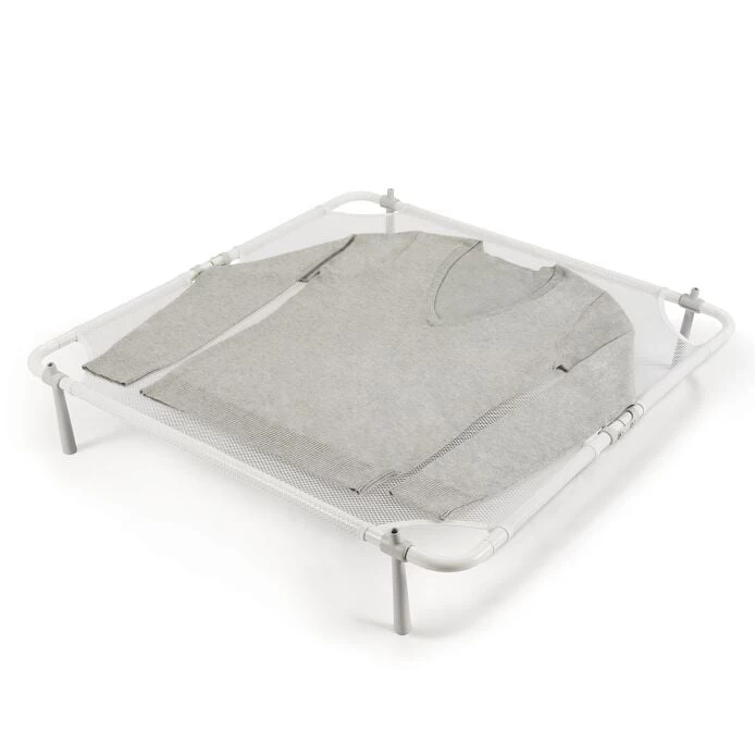 Our Folding Sweater Dryer’s generously sized mesh drying surface lets clothes aerate while lying flat, making it ideal for heavier delicates like sweaters and blouses. Legs are offset from corners to provide maximum drying space even on smaller surfaces like countertops, washing machines or dryers.