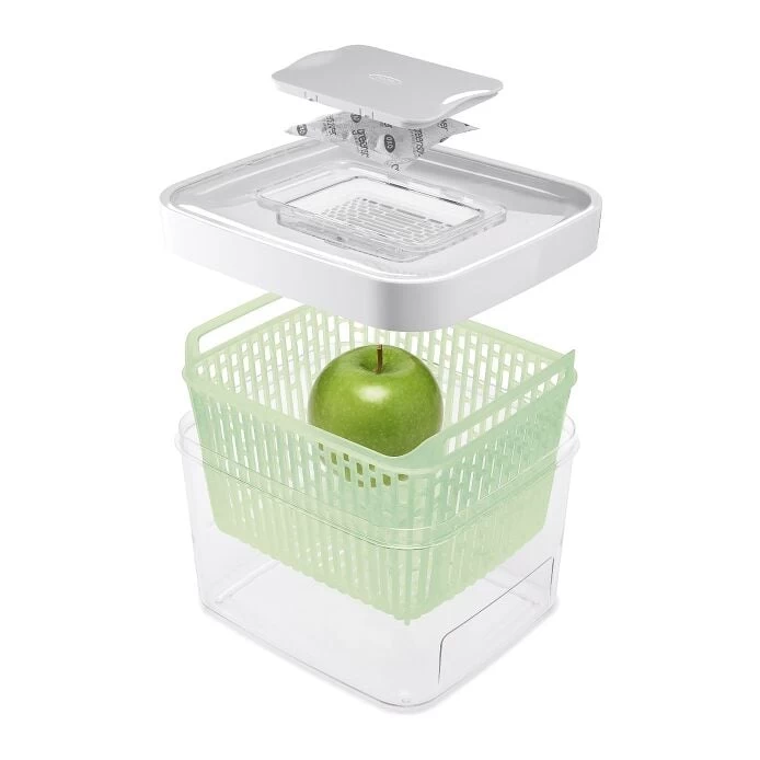 Fruits and vegetables naturally emit ethylene gas, which causes premature spoilage. GreenSaver’s non-toxic, enhanced carbon filters help keep produce fresh longer by absorbing ethylene gas. Each filter lasts 90 days, giving you a year of freshness from a 4 pack, and can be used with any GreenSaver product.