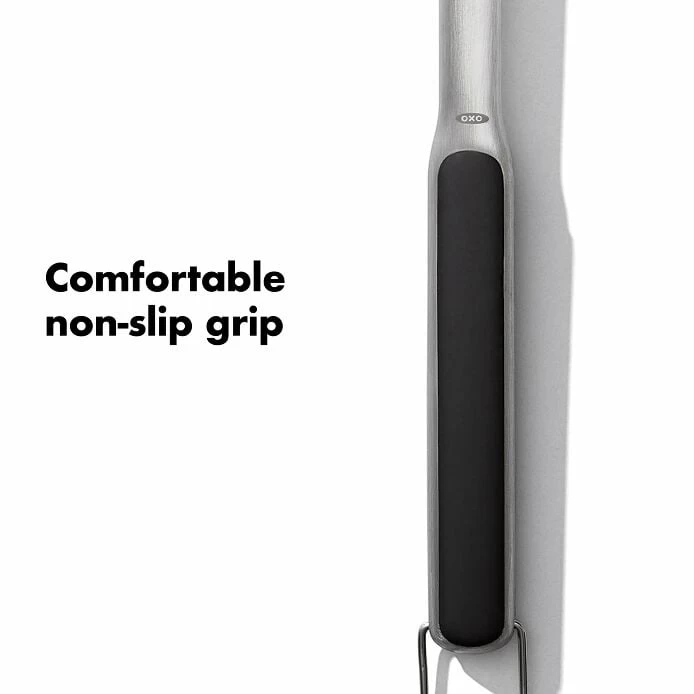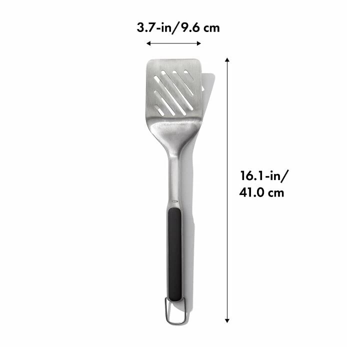 Next time you step up to the grill, reach for a tool you can depend on. Constructed from durable, rust-resistant stainless steel, OXO Good Grips Grilling Turner has a wide, beveled head that slides smoothly under everything from burgers to salmon filets. The double-bend design provides leverage for lifting and transferring, and the comfortable, non-slip grip stays secure in your hand. Dishwasher safe.
