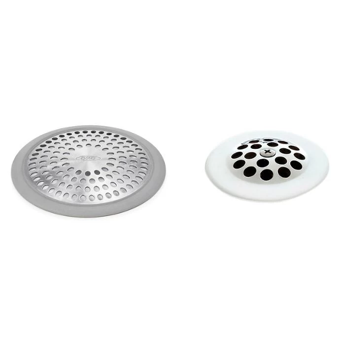 This rustproof stainless steel Bathtub Drain Protector neatly covers tub drains to catch hair and debris. The hole pattern allows water to drain around debris. A silicone rim keeps the Bathtub Drain Protector in place and prevents it from sliding around.