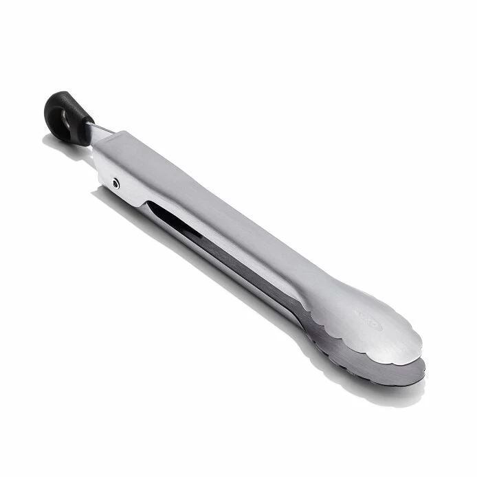 Set up a Pinterest-worthy cheese board with the OXO Good Grips Mini Tongs. The compact size means they’re perfect for removing pickles and olives from jars while you prep, and the stainless steel construction means they look great for serving appetizers, cheeses, crackers, fruit and more. The scalloped edges hold food securely, so you can cook with them too. Tongs lock closed for easy storage. Dishwasher safe.