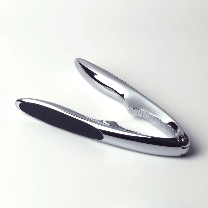 Solid zinc construction makes the Nut/Seafood Cracker an essential tool for shelling nuts and seafood. The grooved opening grabs any size nut securely, while the center is designed to pinch crab legs and lobster tails until they snap. Soft, non-slip grips absorb squeezing pressure.