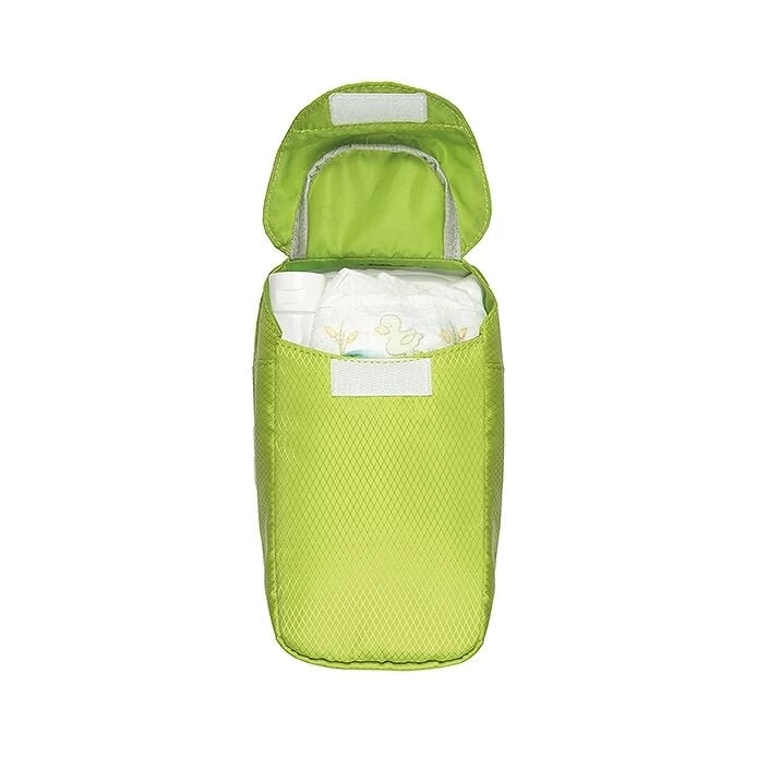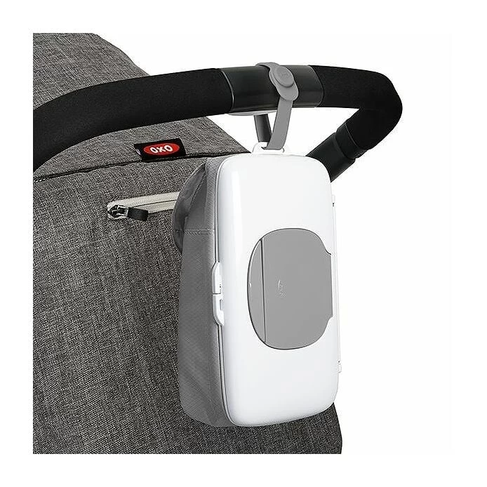 The OXO Tot On-the-Go Wipes Dispenser with Diaper Pouch holds up to 20 wipes, 5 diapers, and diaper cream. The convenient, BPA-free plastic Wipes Dispenser keeps wipes moist, while the cloth pouch on the back holds diapers and keeps them organized. The Dispenser features an Easy pouch opening and pop-open dispenser lid for quick access, and is shaped specifically to tuck into diaper bags, purses, or stroller pockets, so changing on-the-go is a breeze.