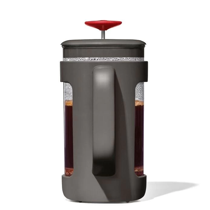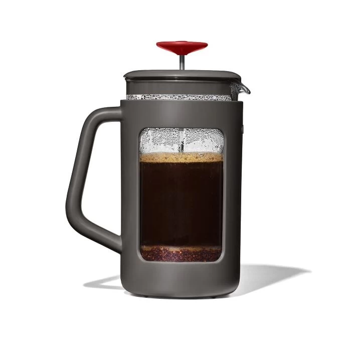 Coffee enthusiasts can take their favorite way to brew on the road with the OXO Outdoor Campgrounds French Press. Its clear carafe is made from durable and shatter resistant BPA-free Tritan™ Renew* plastic, making it a perfect coffee companion while camping, hiking or wherever your wanderlust may lead you. Windows on both sides of the case show the coffee level, and the spout has a secondary level of filtration for a clean, rich taste. Best used with coarsely ground coffee, the 8-cup capacity is ideal for serving parties of two (or more). *Tritan™ Renew is made from certified recycled content through a mass balance allocation process that transforms plastics destined for landfills into high-performance, food-safe materials.