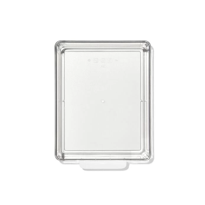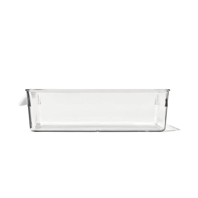 Organize the contents of your fridge to cut down on clutter and prevent food waster. The OXO Good Grips Fridge-Focused Organization System features a combination of bins, drawers, shelves, and risers, to help streamline your refrigerator. The clear, space-saving Bin design provides a visually pleasing way to keep food from getting lost and helps prevent food waste. The rounded handles provide a comfortable grip, especially helpful while prepping a recipe or for little hands grabbing a snack. A smooth base allows the Bins to glide easily so you can keep an eye on food expiration dates. Also available in 8 in x 14 in; 5 in x 14 in and 5 in x 10 in.