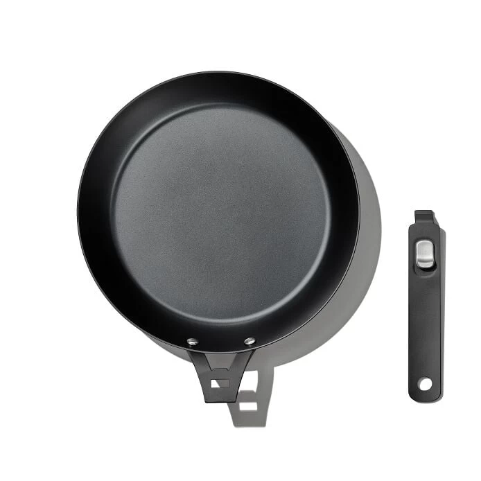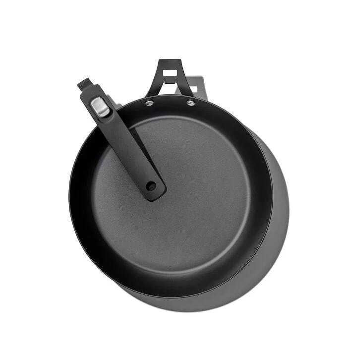 The OXO Outdoor Carbon Steel Pan is the ultimate piece of cookware for camp. It comes pre-seasoned (just wash and get cooking) and naturally develops a non-stick patina as you use it. And because carbon steel is lighter than cast iron, it heats up faster and heats incredibly evenly so you’ll get a perfect sear every time. Use it on the grill, with a camp stove or bring it in the kitchen; it’s safe for all cooktops (including induction) and is oven safe up to 660˚F/350˚C. Bonus: This pan has a removable handle that detaches for direct heat cooking and reverses for easy packing and storage. Hand wash.