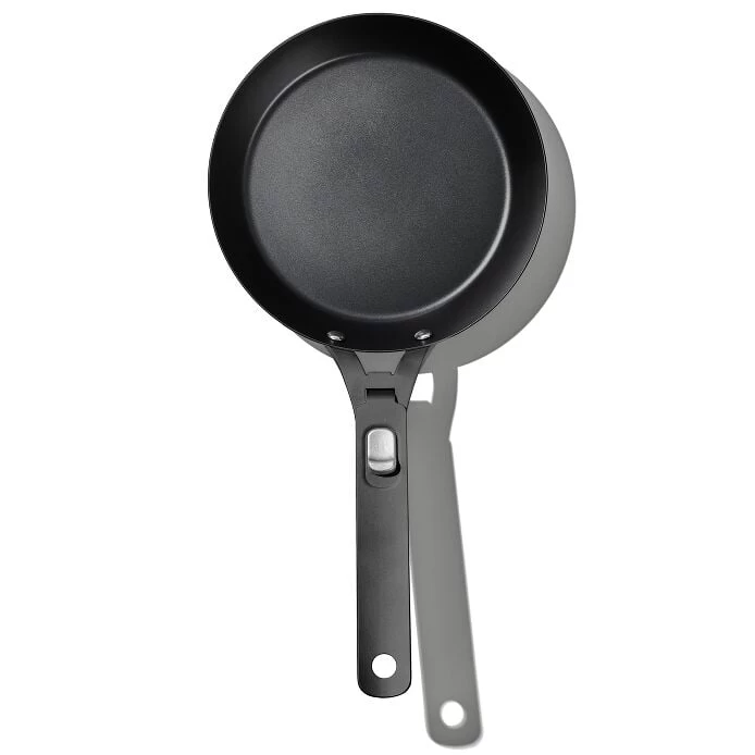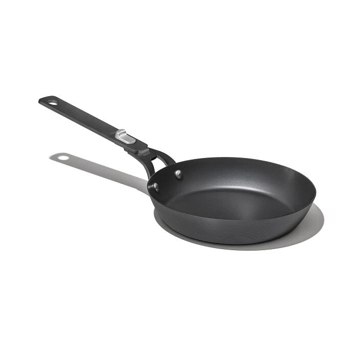 The OXO Outdoor Carbon Steel Pan is the ultimate piece of cookware for camp. It comes pre-seasoned (just wash and get cooking) and naturally develops a non-stick patina as you use it. And because carbon steel is lighter than cast iron, it heats up faster and heats incredibly evenly so you’ll get a perfect sear every time. Use it on the grill, with a camp stove or bring it in the kitchen; it’s safe for all cooktops (including induction) and is oven safe up to 660˚F/350˚C. Bonus: This pan has a removable handle that detaches for direct heat cooking and reverses for easy packing and storage. Hand wash.