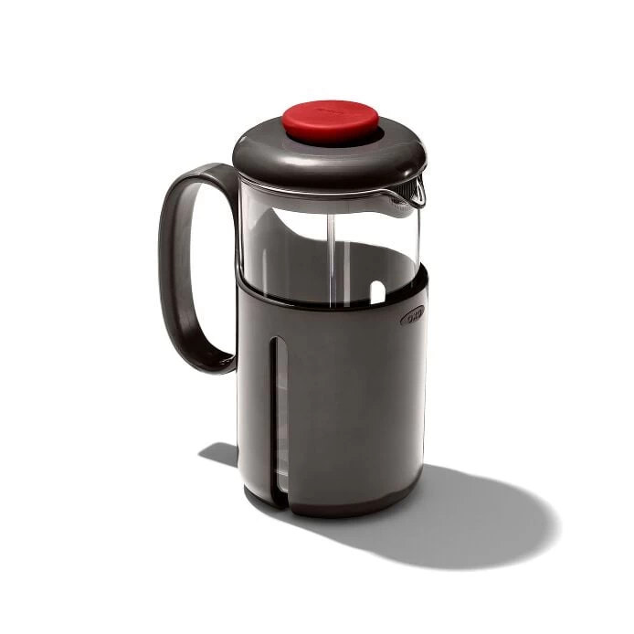 Features 8-cup capacity French press is ideal for brewing smooth, rich coffee anytime, anywhere Shatter-resistant carafe is made from BPA-free, food-safe Tritan™ Renew Durable, protective case with easy-view windows show when it’s time brew a new batch Stainless steel filter with silicone edge filters out coffee grounds and disassembles for easy cleaning Slotted spout provides extra filtration for smooth, grit-free sipping Soft, non-slip handle and knob makes for comfortable pressing and pouring