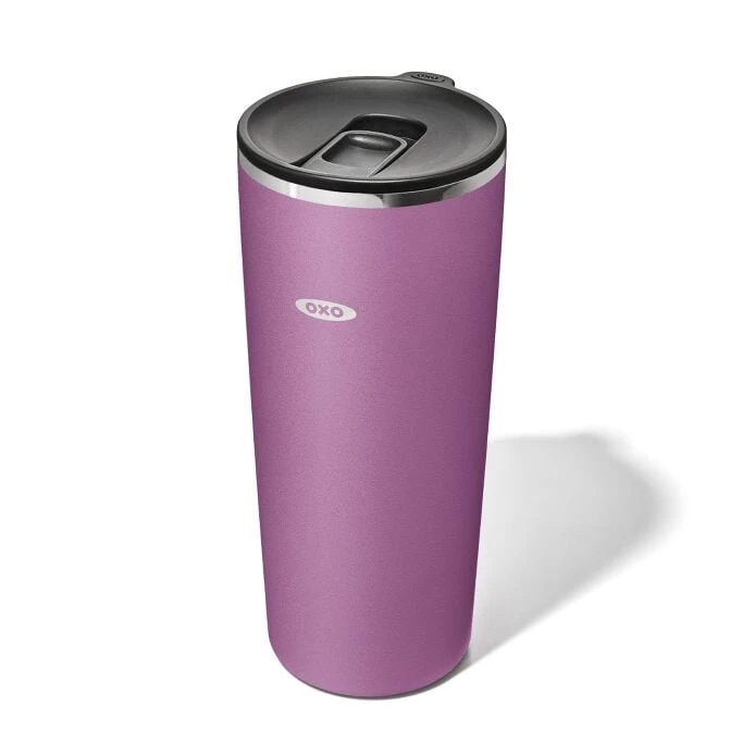 OXO Strive Insulated Tumbler with Easy-Close Lid (20 oz/590 mL) keeps drinks hot (or cold!) all day long. The Insulated Tumbler is sized to fit most car cup holders and features an easy-close design to help minimize messes. The wide lid opening is big enough for sipping or for reusable straws. The Insulated Tumbler’s double-wall vacuum insulation keeps your cold drinks cold for 12 hours, and your hot drinks hot for 6 hours. Dishwasher safe, stainless steel, BPA free. By choosing to reuse, you’re doing better for the planet. For over 30 years, we’ve designed products that make every day better at home. By committing 1% of our annual sales to support environmental nonprofits, we’re pledging to make every day better for the planet.Features Lid opening is sized for sipping or for straws Easy-close design helps minimize messes Double-wall vacuum insulated Sized to fit in most car cup holders Keeps drinks hot for 6 hours, cold for 12 hours Holds 20 oz/590 mL