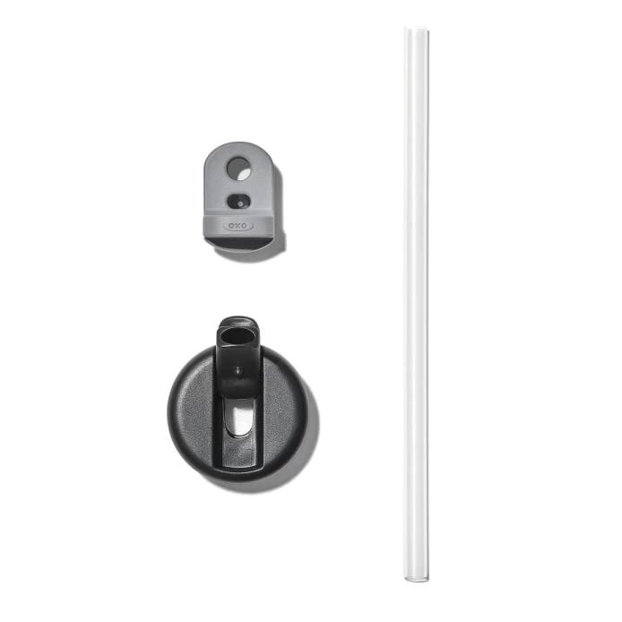 Switch up the way you sip with the OXO Strive Water Bottle Straw Lid. Simply cut straw to customize and twist onto any size OXO Insulated Water Bottles with standard size openings. The convenient straw flips open for easy access and snaps closed to help prevent spills. The lid features a removable silicone gasket, making it extra easy to clean. BPA free, top-rack dishwasher safe.