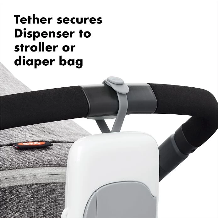 The OXO Tot On-the-Go Wipes Dispenser is perfect for keeping wet wipes within reach while traveling. Push the large button to reveal a large opening, offering easy access to your preferred brand of wipes. A handy silicone strap attaches directly to strollers and diaper bags, or tuck the slim Dispenser into your bag or purse. BPA-free body. Set of two so you can have one in the car and one in the diaper bag.Features Keeps wipes close for on-the-go access Large button for easy one-handed opening Silicone tether secures Dispenser to strollers or diaper bags Generous opening offers easy access, dispenses one wipe at a time Slim shape tucks neatly into most bags; 2-pack means you can have one in the car and one in the diaper bag BPA-free body