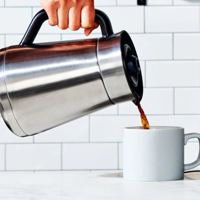 The double-wall, vacuum-insulated thermal carafe keeps your coffee hot, and the brew-through, pour-through lid means you don’t have to fuss with opening the carafe lid before pouring. Compatible only with the OXO Brew 9-Cup Coffee Maker (8710100).