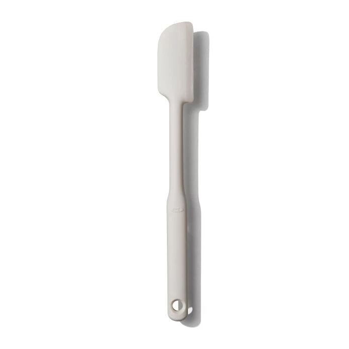 With the OXO Good Grips Jar Spatula, you can reach in any jar or container to get every drop. Flexible edges clear surfaces with ease, and are also great for blender blades, food processors, and even small saucepans. The long handle provides extra reach, and the comfortable, non-slip grip helps you take on tough tasks. Heat resistant silicone is easy to clean and dishwasher safe.