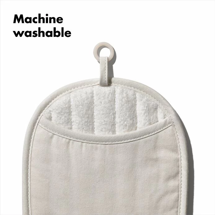 The OXO Good Grips Silicone Pot Holder protects your hand and other surfaces from extreme heat without sacrificing dexterity or grip. The Pot Holder features a flexible, non-slip diamond pattern that’s flame-, stain- and steam-resistant and designed to dissipate heat. Slip one hand into the comfortable, fabric-lined backside pocket for added control and insulation. The Pot Holder doubles as a trivet and includes a hanging loop for simple storage. Rinse clean, wipe down with a damp cloth, or machine wash.