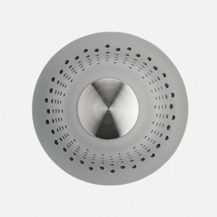 The Drain Protector catches hair without blocking water drainage, and the tall dome shape accommodates both flat and pop-up drains. The silicone Drain Protector has a stainless steel weighted accent to keep it in place, and the edges sit flush with the tub so no hair gets through.