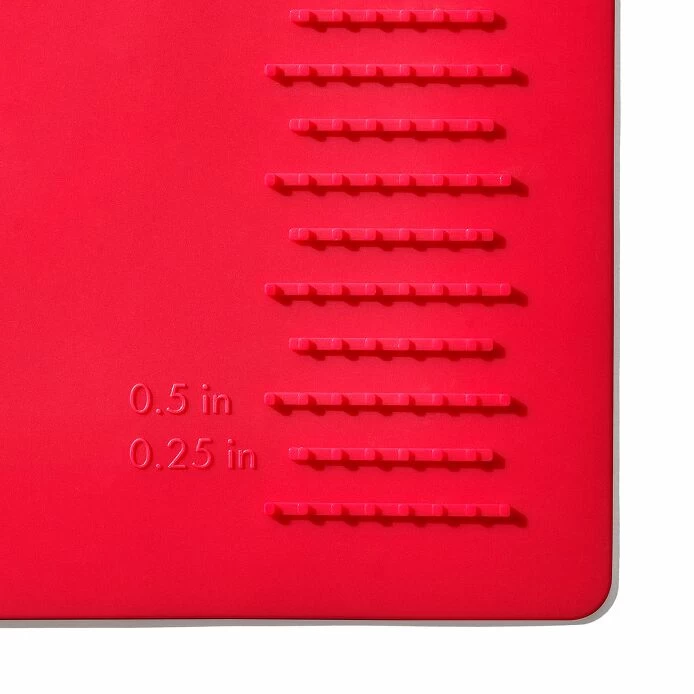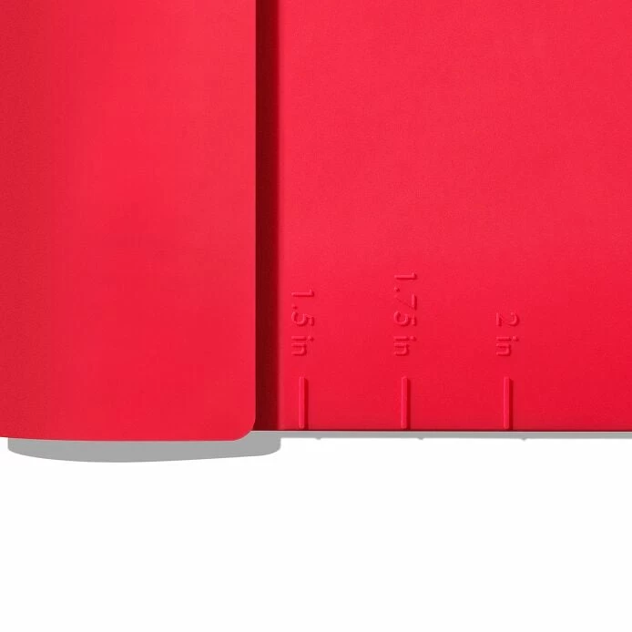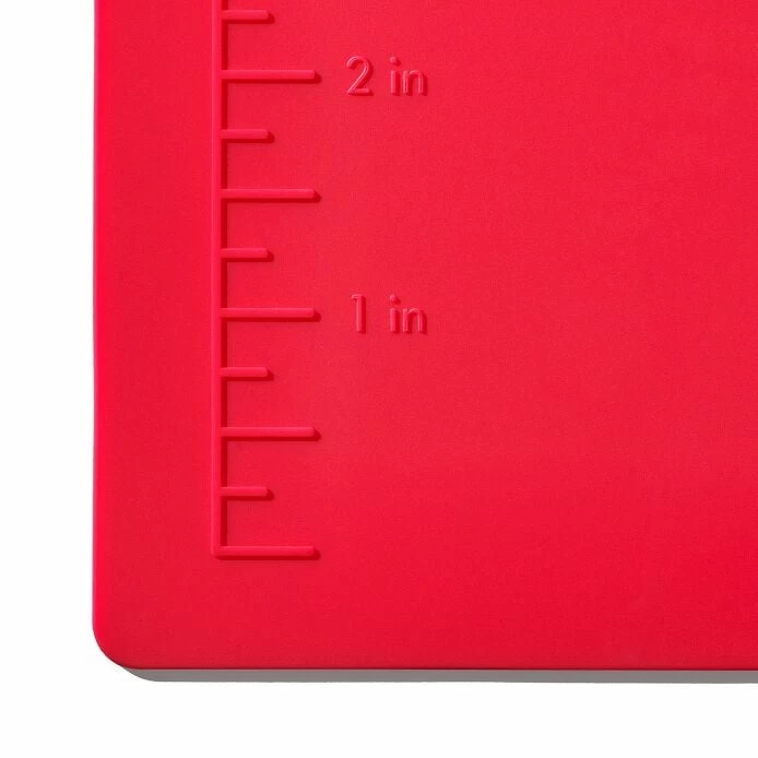 Icebox cookie are a favorite among home bakers since they bake up fast, but we know the forming and chilling of the dough can be tedious. With the OXO Slice + Bake Cookie Helper, we’ve set you up for success! Our set of two handy silicone mats helps you shape, pre-measure and store cookie dough with ease. Once your dough is formed, our mat does the rest—simply lay down your dough and shape into a log. Rest the log on the side with our raised markings that will gently perforate your dough so that once it’s chilled you have an easy guide to follow to slice up uniform cookies. Use our built-in measurement guides on each side of the mat to form your dough to either make 1.5”, 1.75” or 2” diameter cookies. Once your dough is rolled up, use the included end caps to compress and seal the dough, secure the strap and your logs are ready to be chilled in the fridge or freezer until you’re ready to slice and bake! Just be sure to move the dough to a proper cutting surface before slicing – never slice on the mat. Mats and end caps are dishwasher safe.