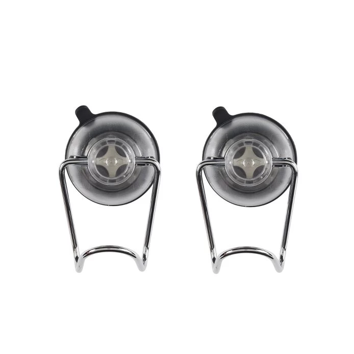 Our StrongHold™ Suction Hooks each use PVC-free StrongHold™ Suction Cups to adhere securely to any tile, glass or other non-porous surface with the push of a button. The clicking sound indicates that the cups are securely attached. Convenient release tabs quickly deactivate suction.